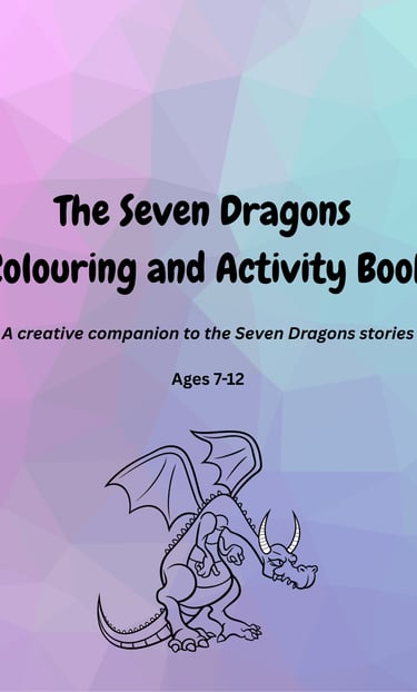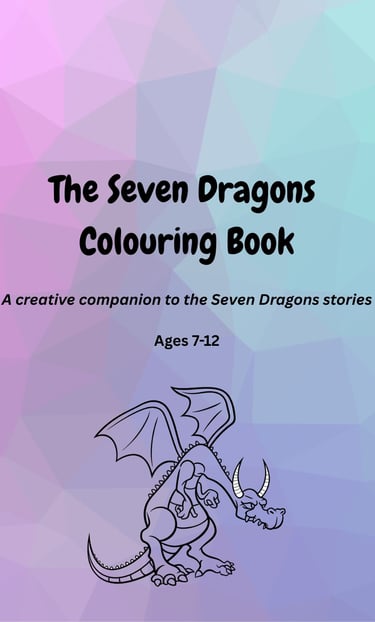 The Seven Dragons Colouring Book is a printable creative companion to the Seven Dragons stories, featuring seven dragon illustrations and thoughtful prompts that encourage imagination, reflection, and storytelling. Designed for ages 7–12, it’s suitable for home or classroom use and can be enjoyed independently or together.
